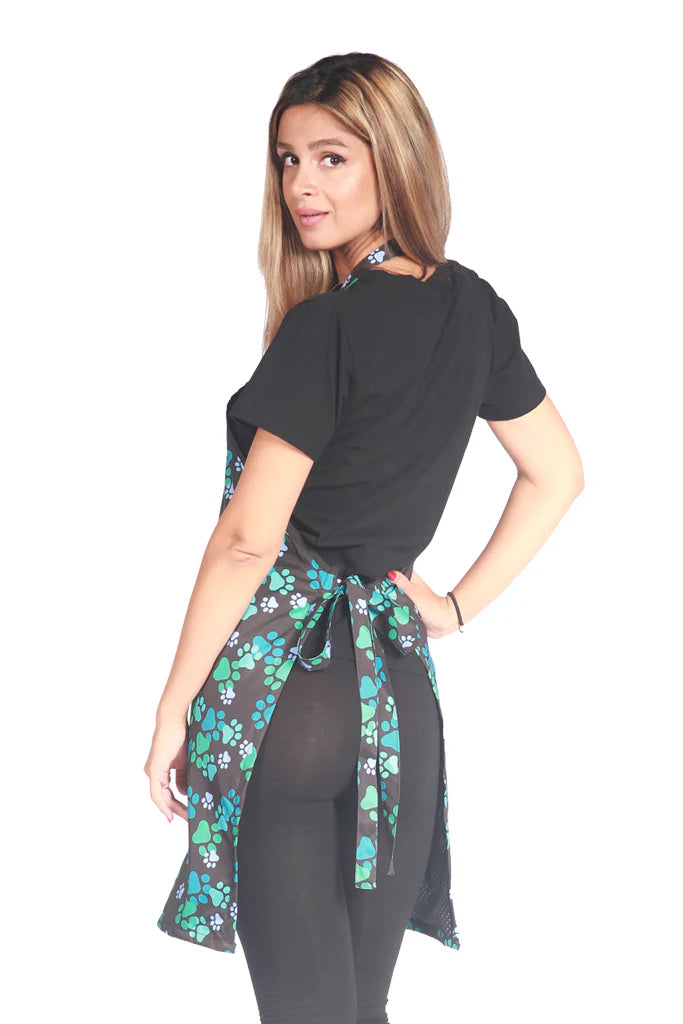 Designed with a comfortable inside mesh lining, this apron ensures that even during the most challenging grooming sessions, you feel at ease. It’s more than just an apron; it’s a shield! With features such as hair repellent fabric and bleach resistance, it's built to withstand the rigors of grooming while looking fabulous in its vibrant blue paw print design.