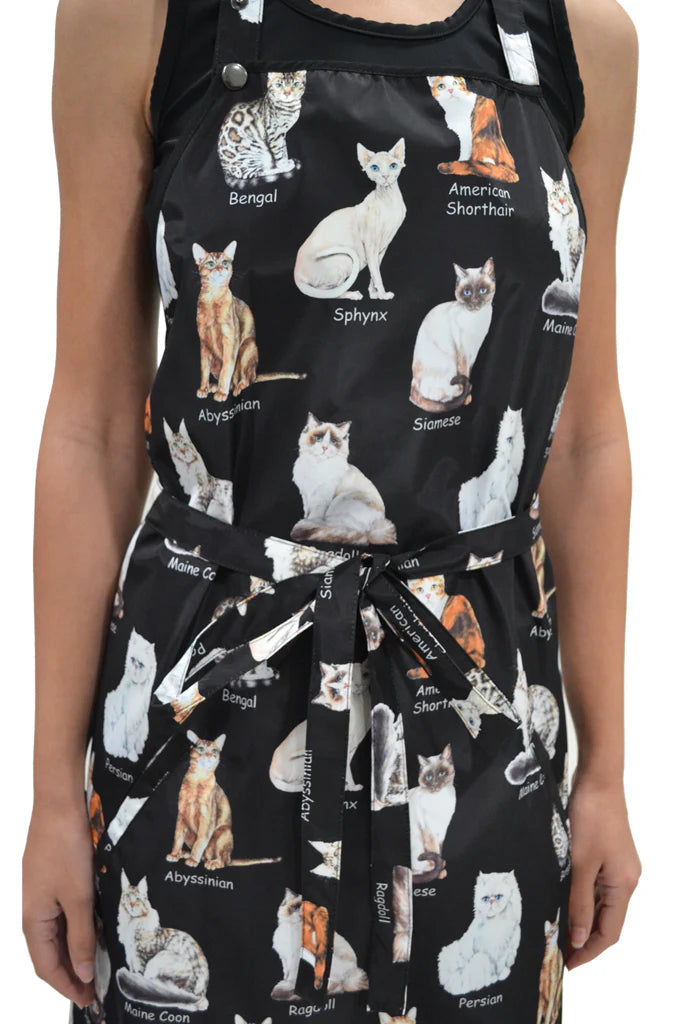 Transform your grooming experience with the Groomer's Catty Waterproof Apron – the ultimate blend of functionality and feline flair! Picture this: you're mid-grooming session, water splashing, fur flying, and yet you remain impeccably clean and stylish. That’s the magic of our vibrant apron that features portraits of your favorite cat breeds, from the majestic Maine Coon to the charming American Shorthair.